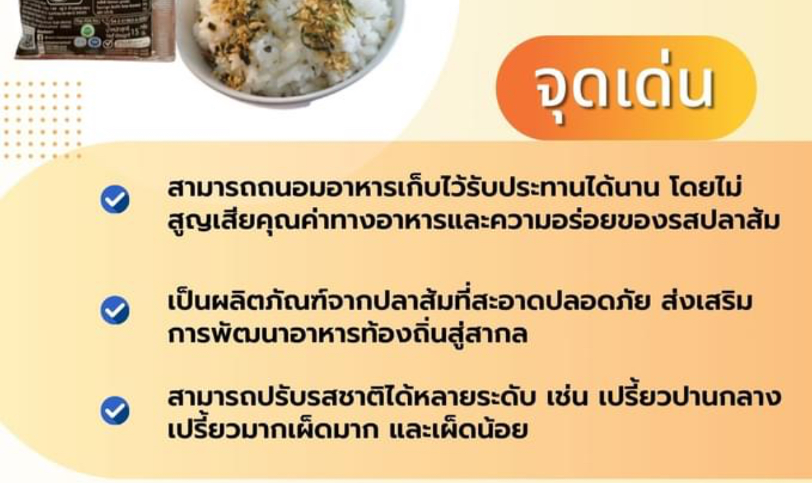 เป็นผลิตภัณฑ์จากปลาส้มที่สะอาดปลอดภัย ส่งเสริมการพัฒนาอาหารท้องถิ่นสู่สากล